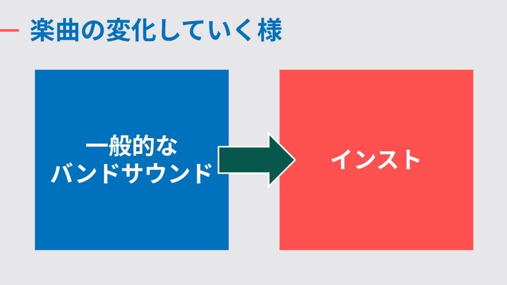 リバーブといった残響系のエフェクトも足されていって、シューゲイザーのような楽曲へと変化していきます。どことなくナンバーガールや17歳とベルリンの壁といったバンドから影響を受けているのかなとも考えられます。
